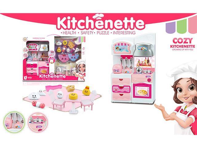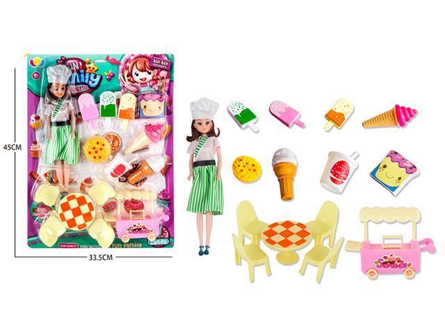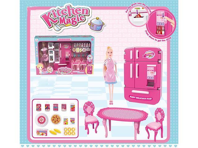 多门冰箱售货机+桌椅+面包配件+粉围裙芭比带灯光声音,3xAA不包 |